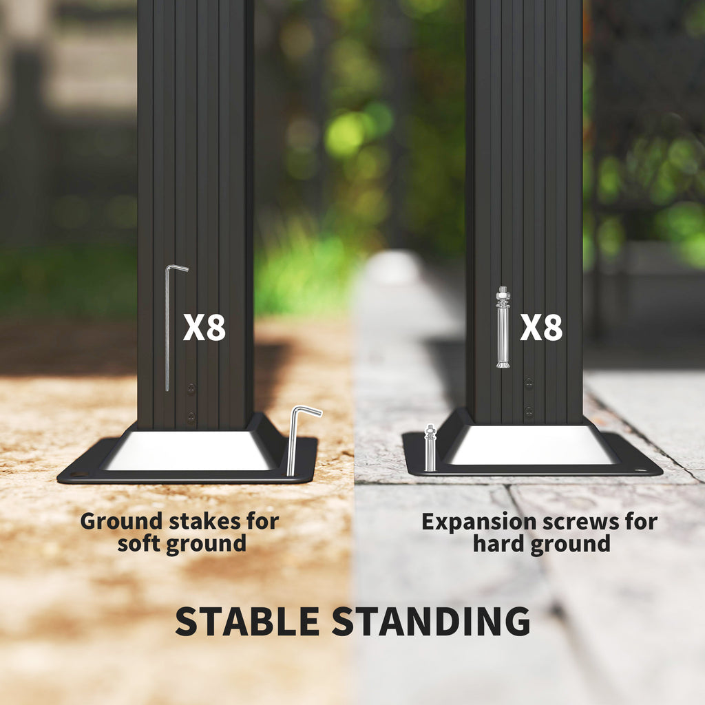 This Outsunny retractable pergola allows you to be in control - enjoy the sunshine or relax in the shade. Move the fabric roof panel to a position of your choice, letting you be fully in control. The aluminium structure is strong, with ground stakes and expansion screws included to attach to the floor. Grommet holes on the fabric for easy water drainage. Enjoy your outdoor space more than ever before.