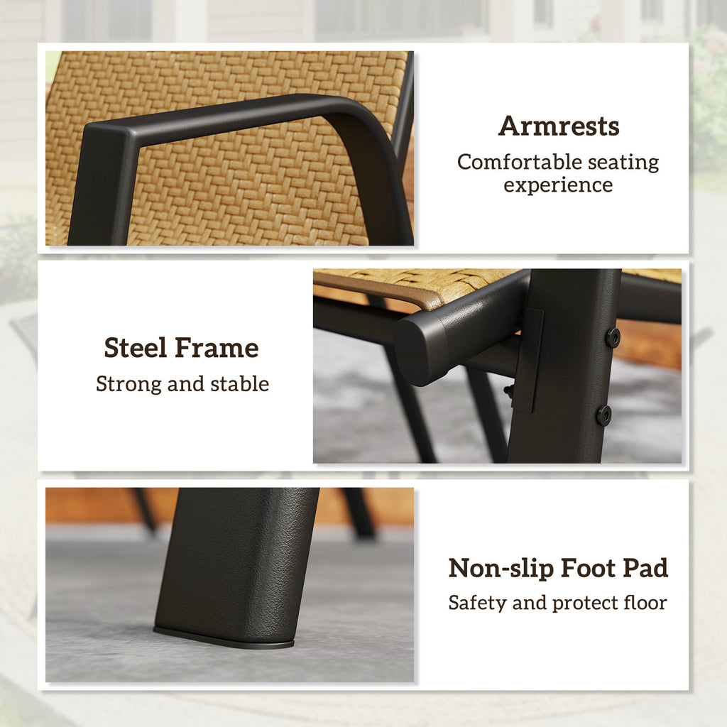 This Outsunny garden chair set is a simple set, suitable for all outdoor spaces. Powder coated steel frames mean a strong core, with rattan seats for a stylish garden look. The stackable design makes it easy to store all chairs away when not being used. Minimal effort for you