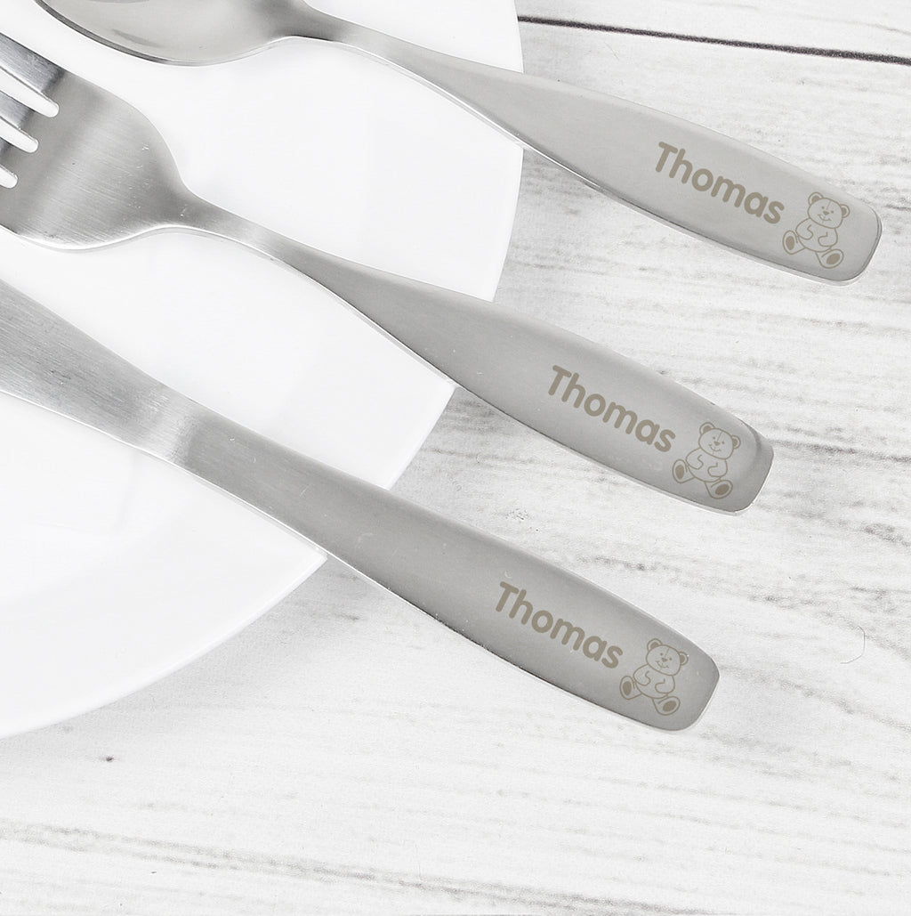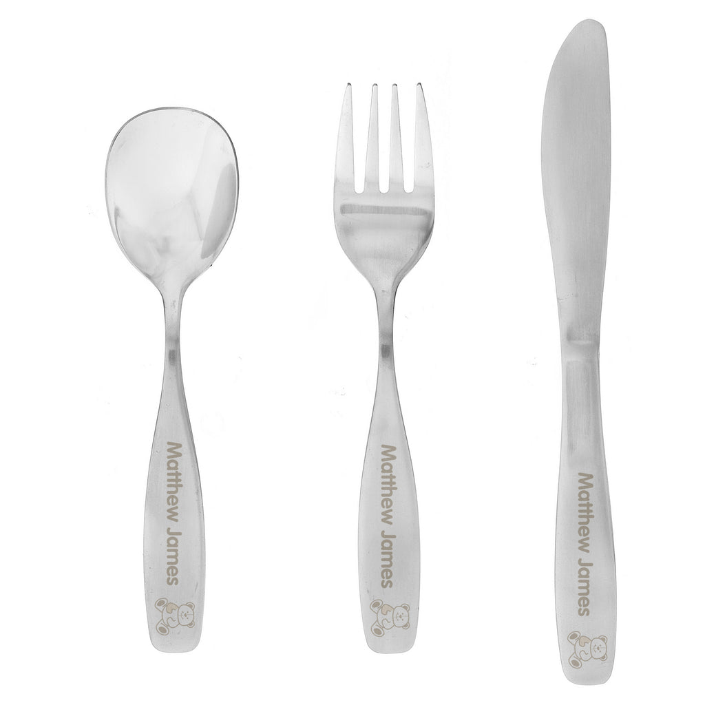 This stainless steel cutlery set can be personalised with any name up to 15 characters.