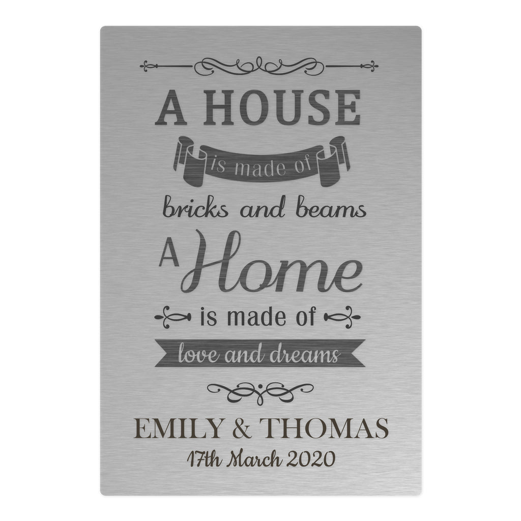 This Personalised 'A House Is Made Of...' Metal Sign is a perfect way of celebrating a special home.