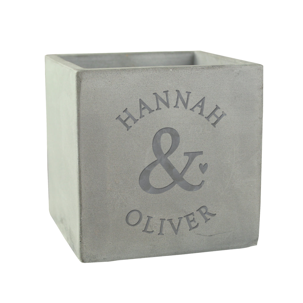You can personalise this pot with 2 names, each name has up to 12 characters available.