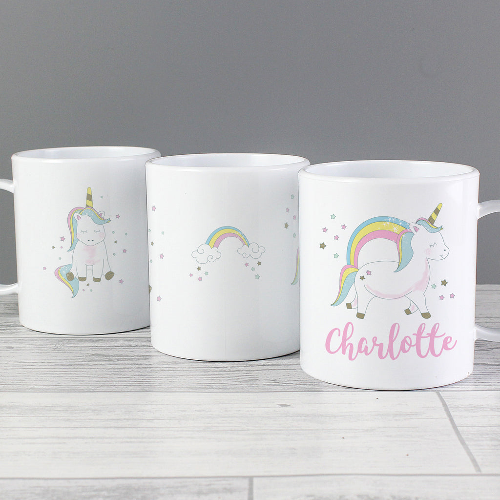A practical shatter resistant Baby Unicorn plastic mug is perfect for little ones at dinner time!