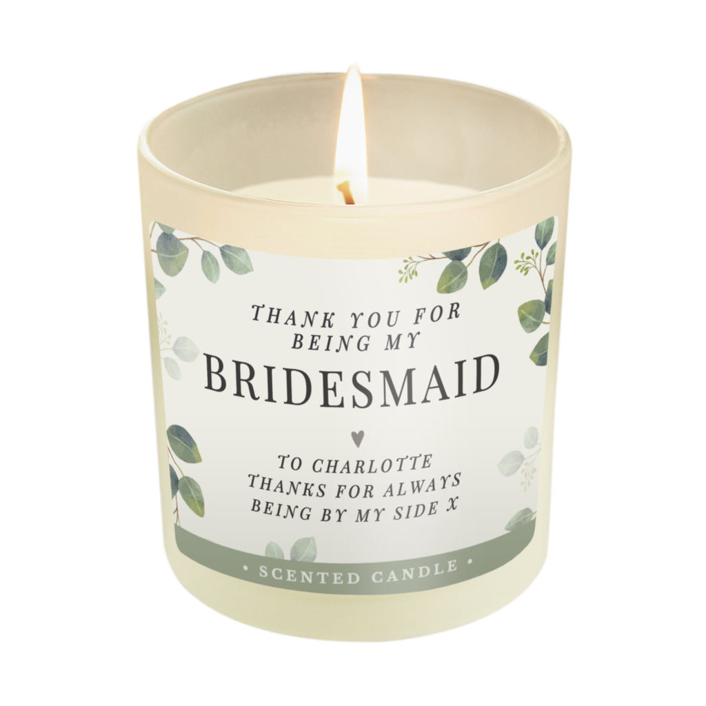 This cute Personalised Botanical Free Text Vanilla Scented Jar Candle is the perfect gift for any member of the Wedding Party.