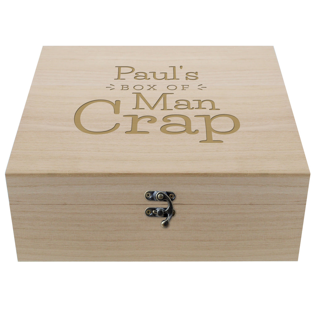 Personalised Box of Man Crap Large Wooden Keepsake Box