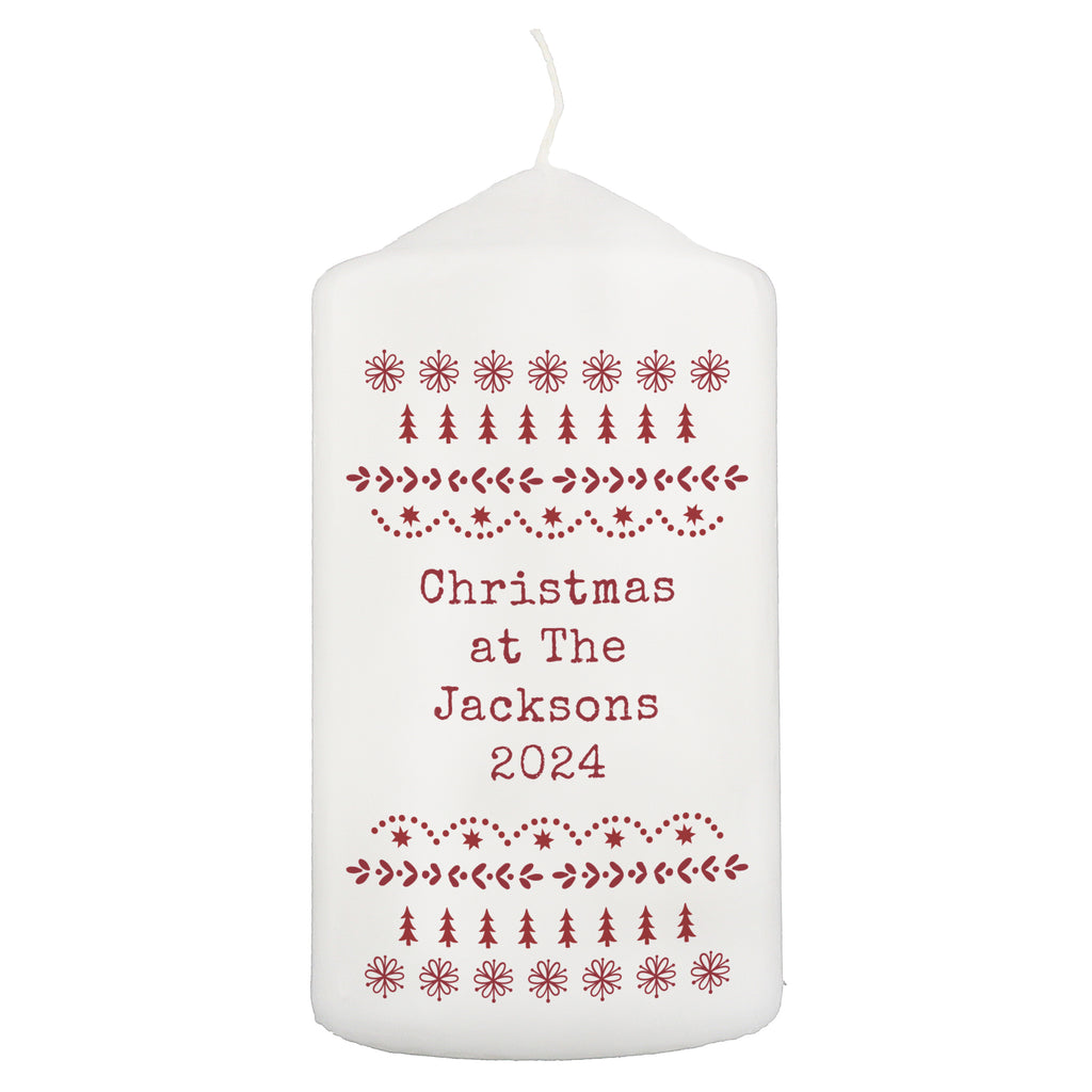 Illuminate your festive season with our exquisite Personalised Christmas Fair Isle Pillar Candle.