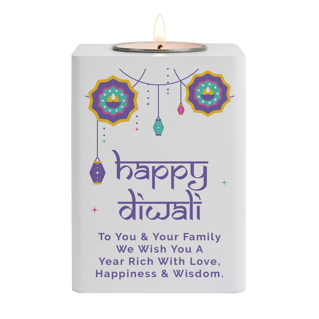 This personalised wooden tealight holder is a lovely gift to celebrate Diwali - the festival of lights.