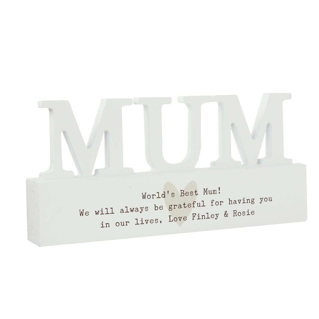 This Personalised Free Text Heart Wooden Mum Ornament is perfect for any occasion!