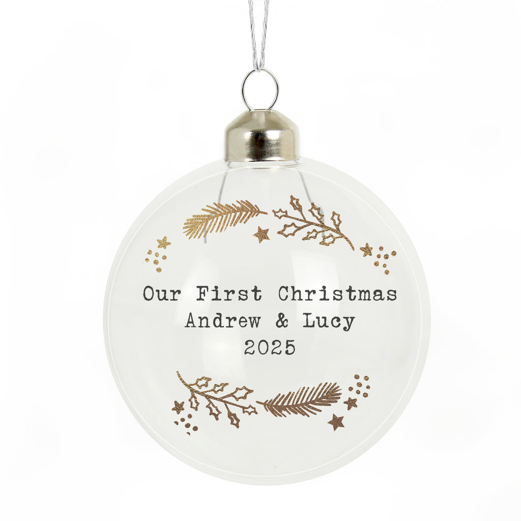 This Personalised Gold Wreath Glass Bauble is a great way to add a personal touch to the Christmas tree.