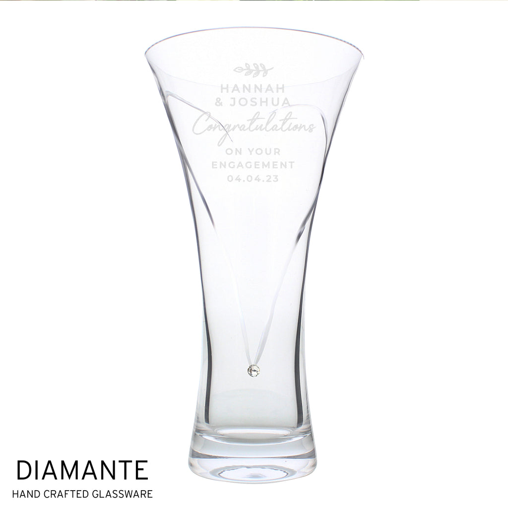 This diamante vase features a cut heart swirl design. It also features a small hearts design underneath the personalisation.