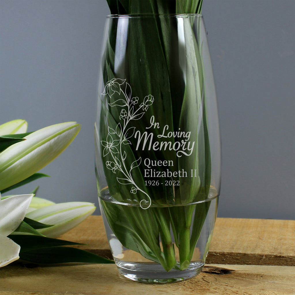 Personalise this In Loving Memory Vase with 3 lines of 15 characters suitable for a First name, surname and a date. .