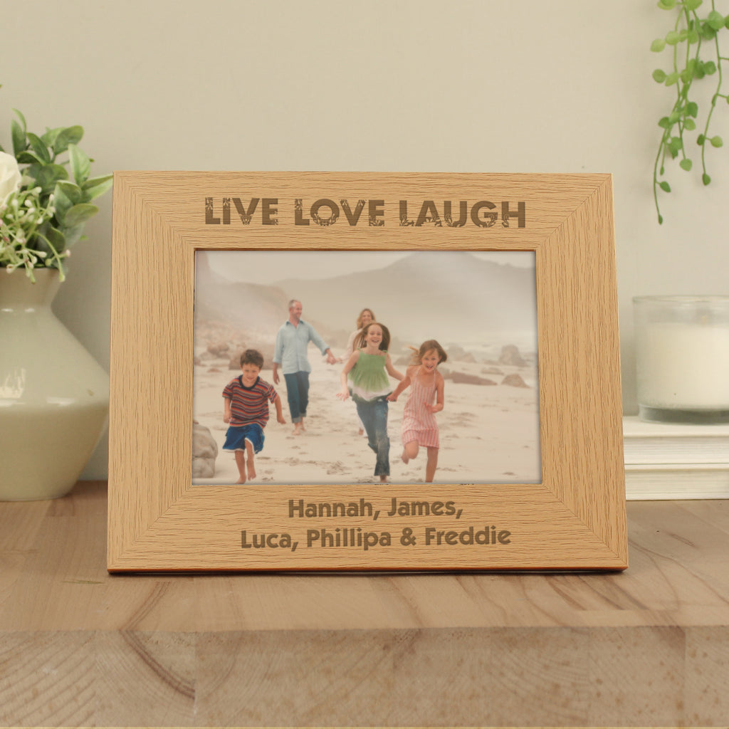 Personalise this Live Laugh Love 7x5 Frame with 2 lines of 30 characters below photo.