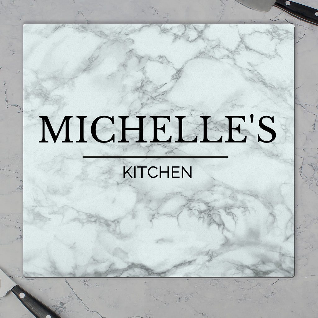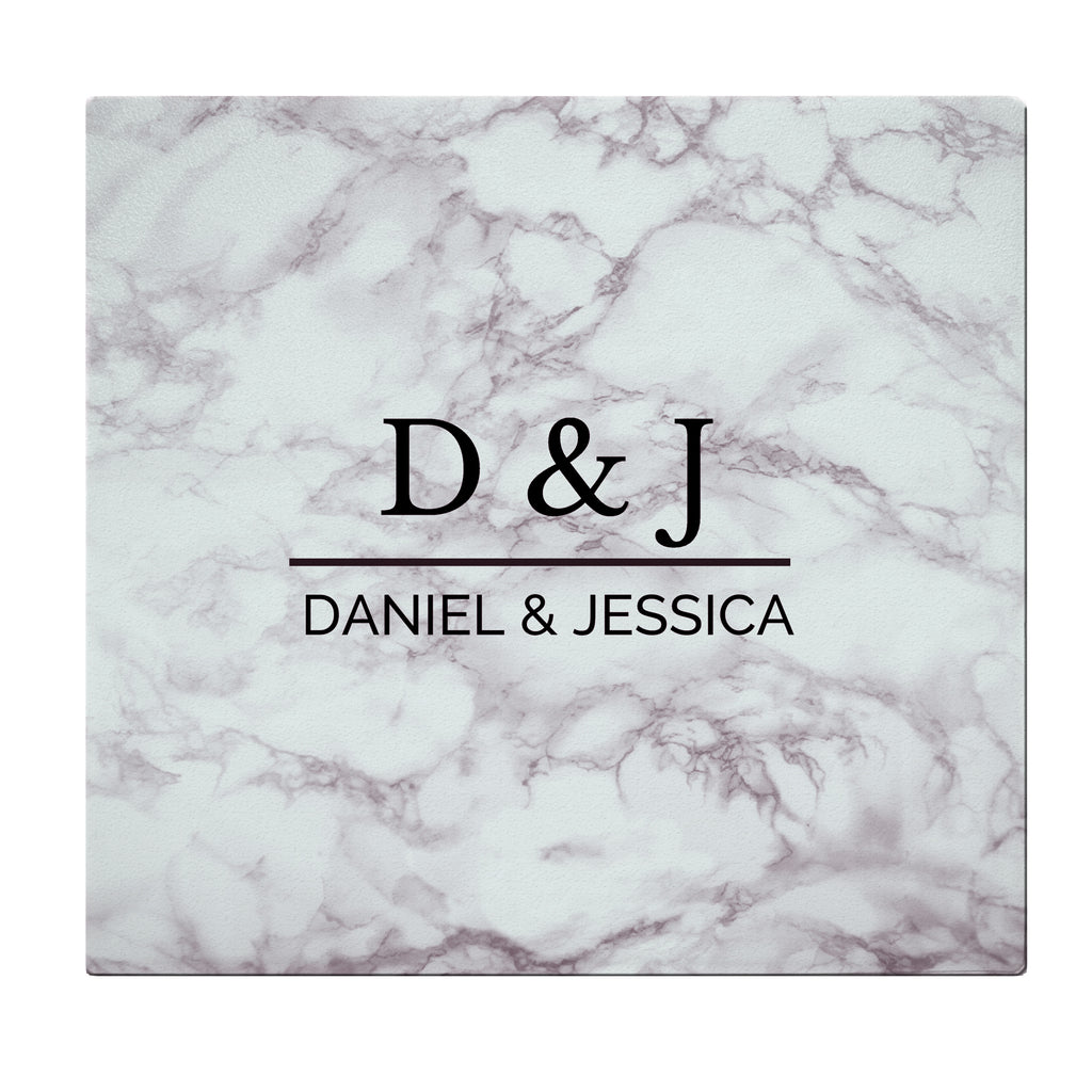 You can personalise this Marble Effect Glass Chopping Board with any message up to 2 lines of text. Line 1 can hold up to 12 characters and line 2 can hold up to 20 characters.