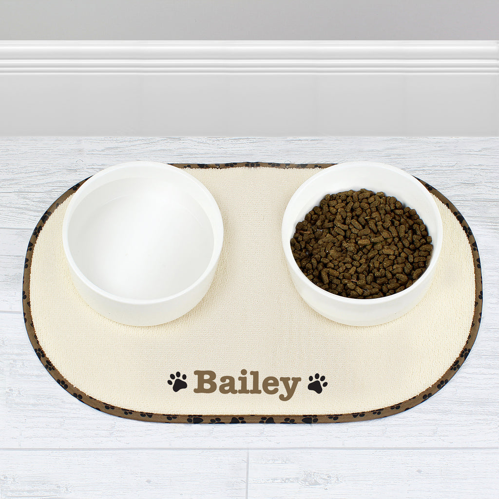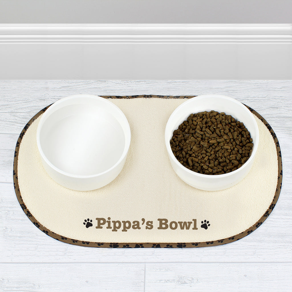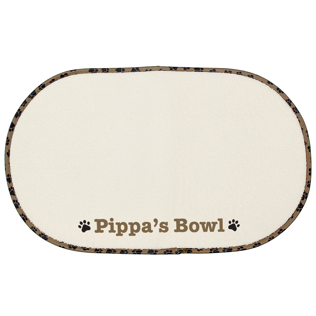 Our Personalised Brown Paw Print Pet Bowl Placemat is perfect for catching water and food from your adorable messy