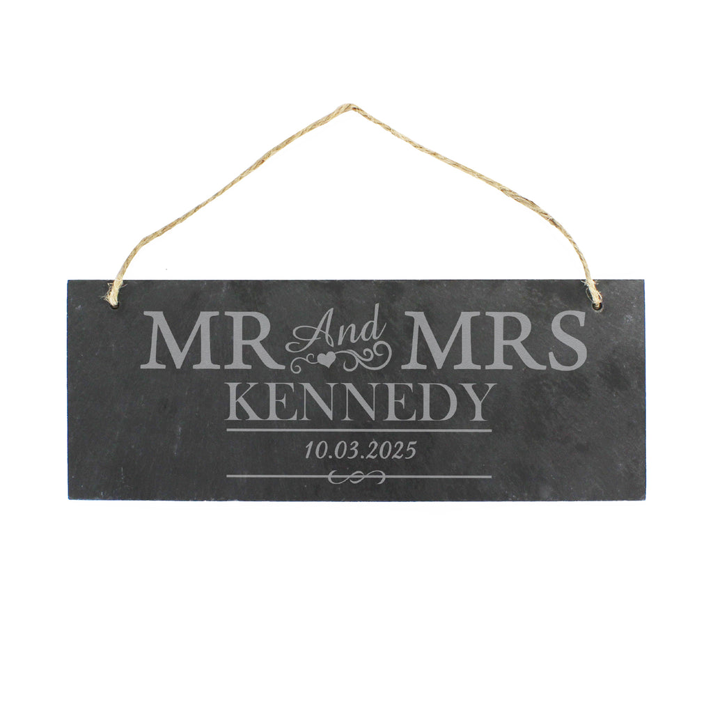 Personalise this Mr & Mrs Door Sign with a couples surname up to 15 characters and date up to 20 characters.