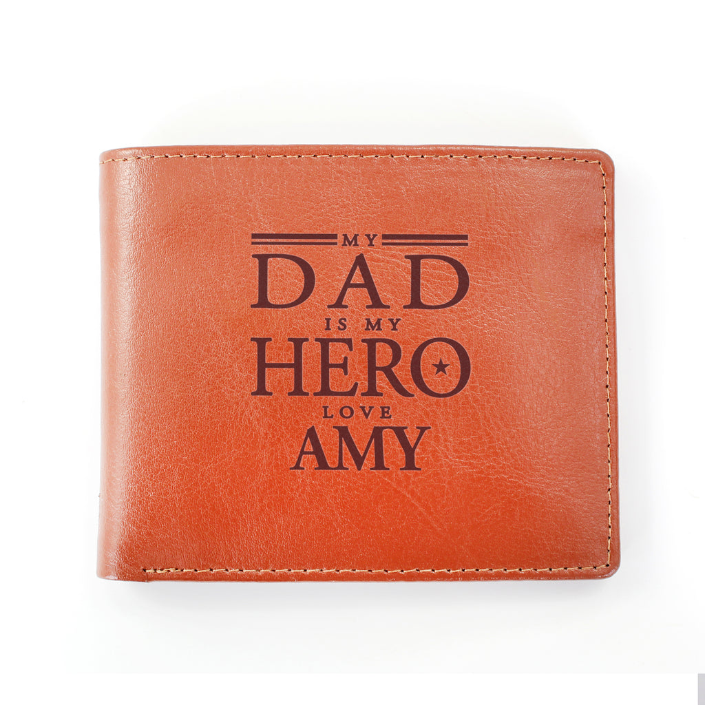 The text 'My Dad is My Hero, love' is fixed and will appear as standard on the wallet.