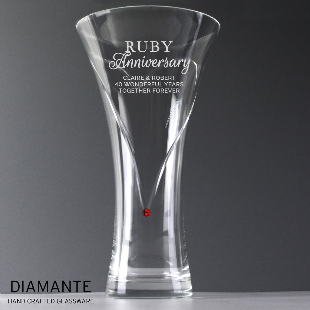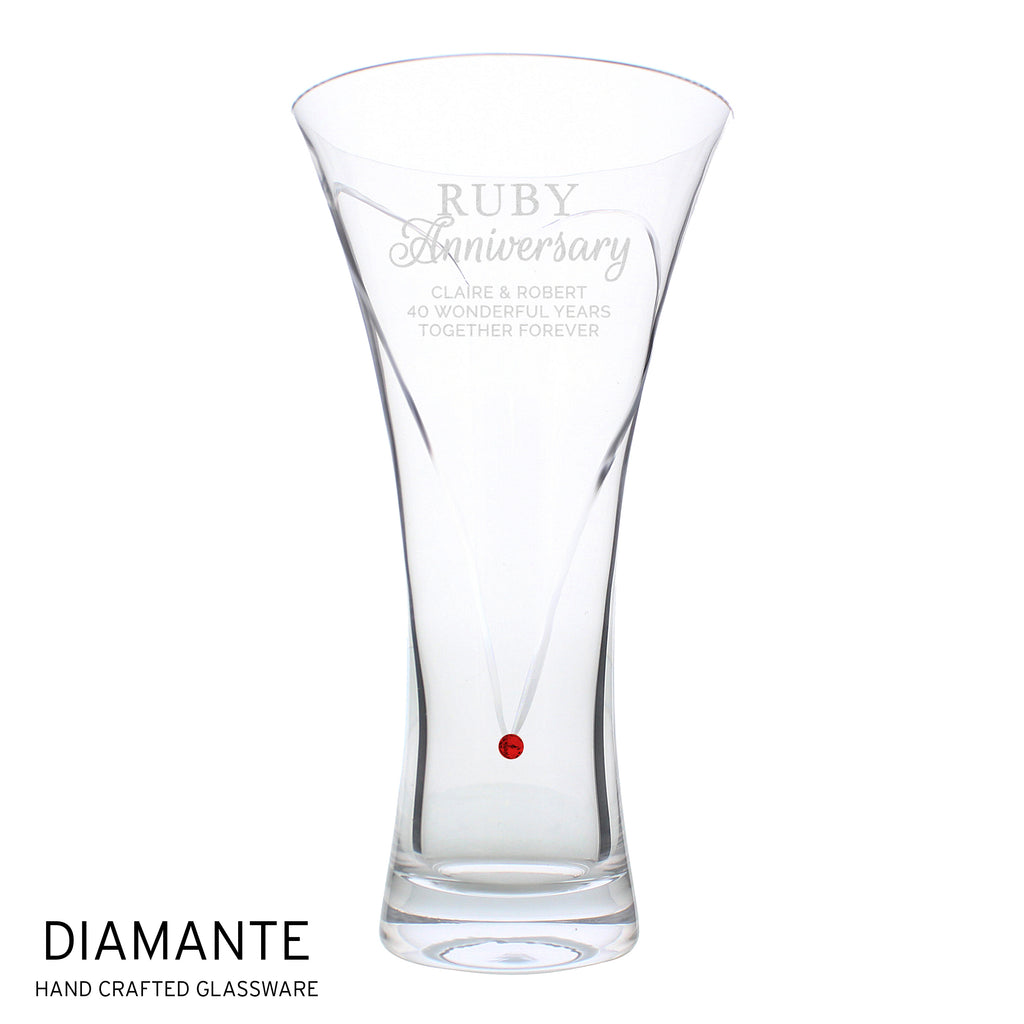 Personalise this Hand Cut large Ruby Diamante Vase with a message up to 3 lines of 20 characters.