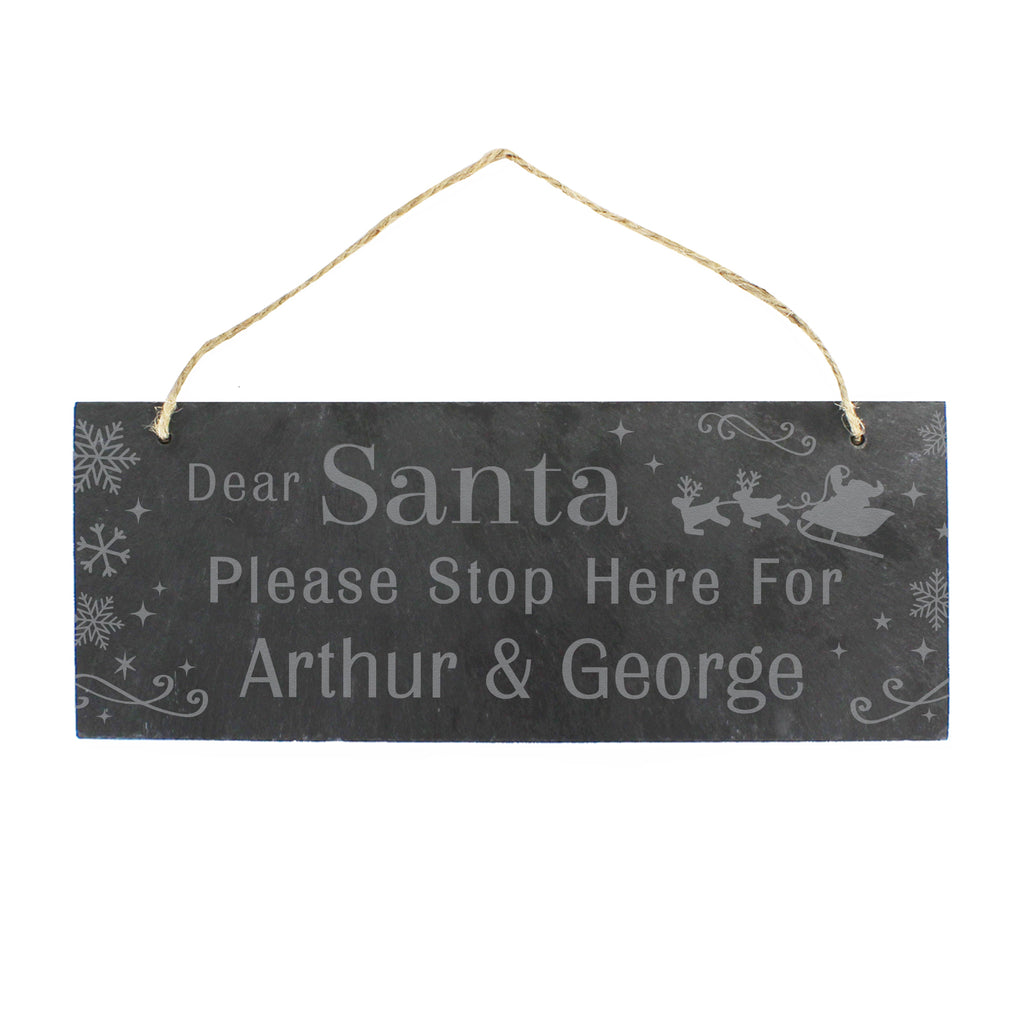 Personalised Santa Please Stop Here... Hanging Slate Sign