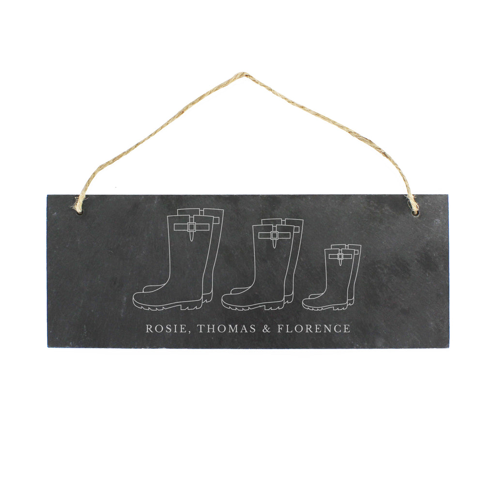 Personalised Welly Boot Family of Three Hanging Slate Plaque