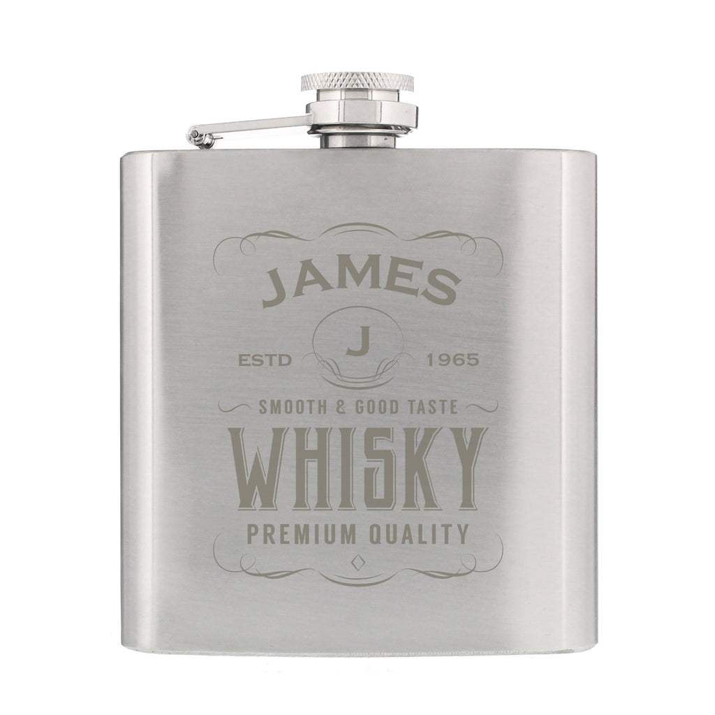 This 6oz stainless steel hip flask can be engraved with a name up to 12 characters, an initial and a year up to 4 characters long.