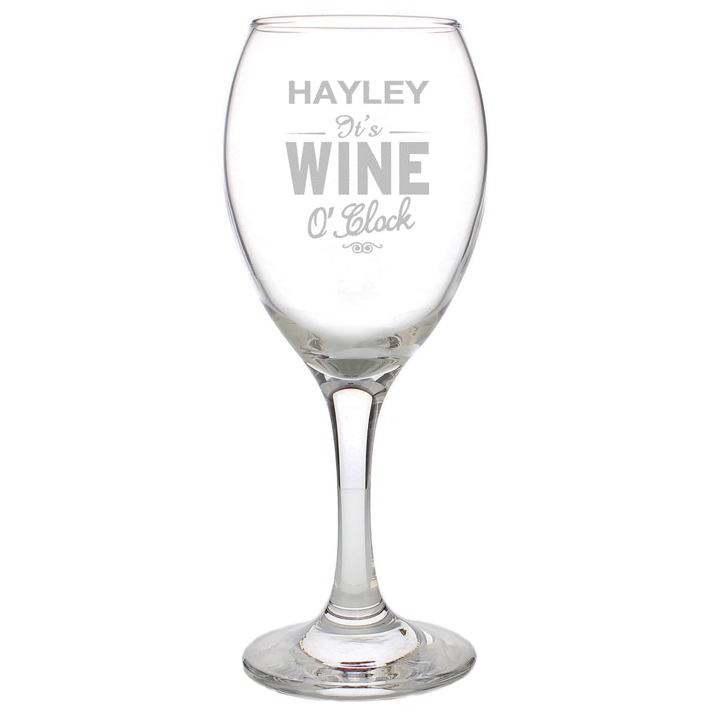 Personalise this ''It's Wine o'clock'' glass, that features a stylish typography design, with a name up to 10 characters.