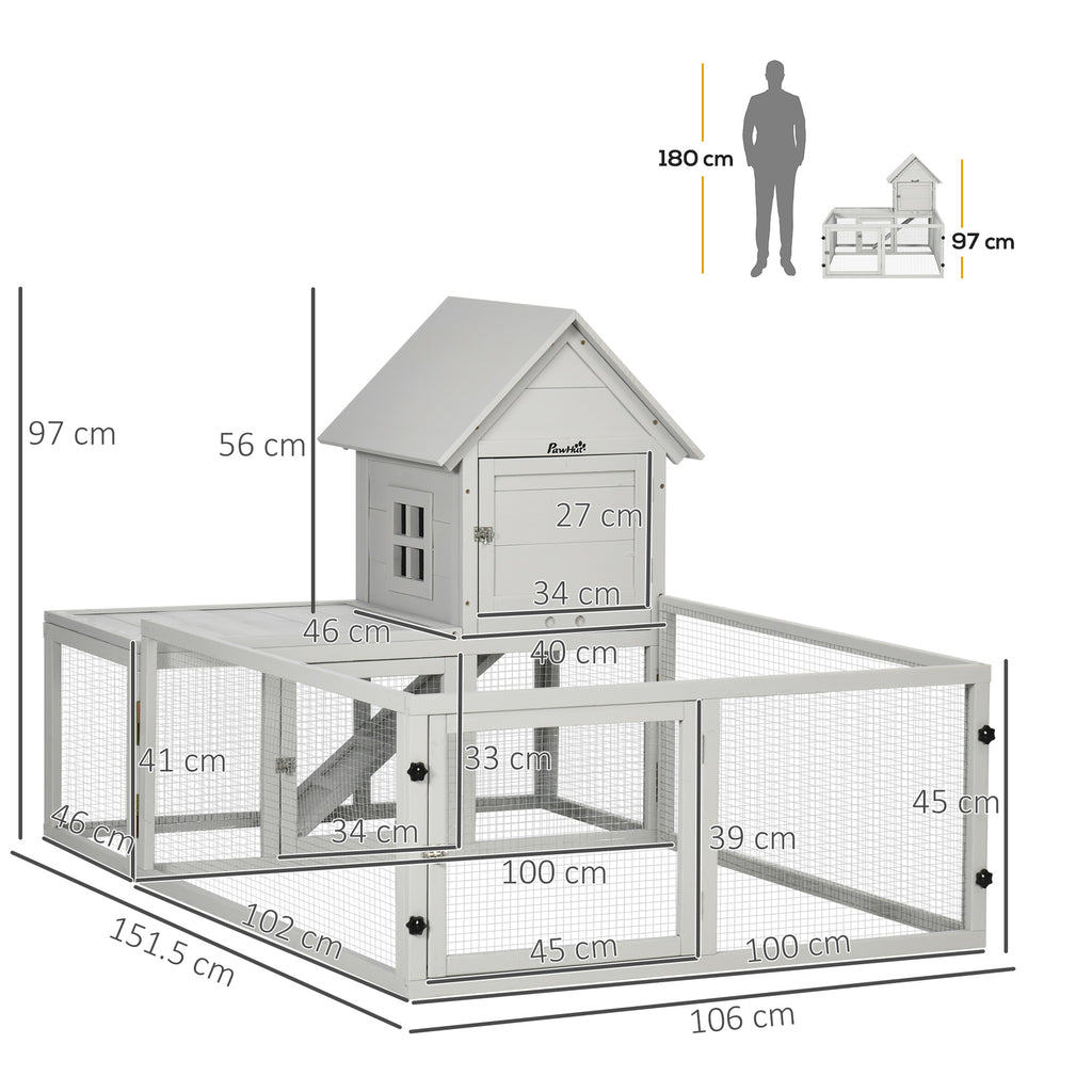 PawHut 5FT Rabbit Hutch with Run Wooden Large Guinea Pig Cage for Indoor, Grey