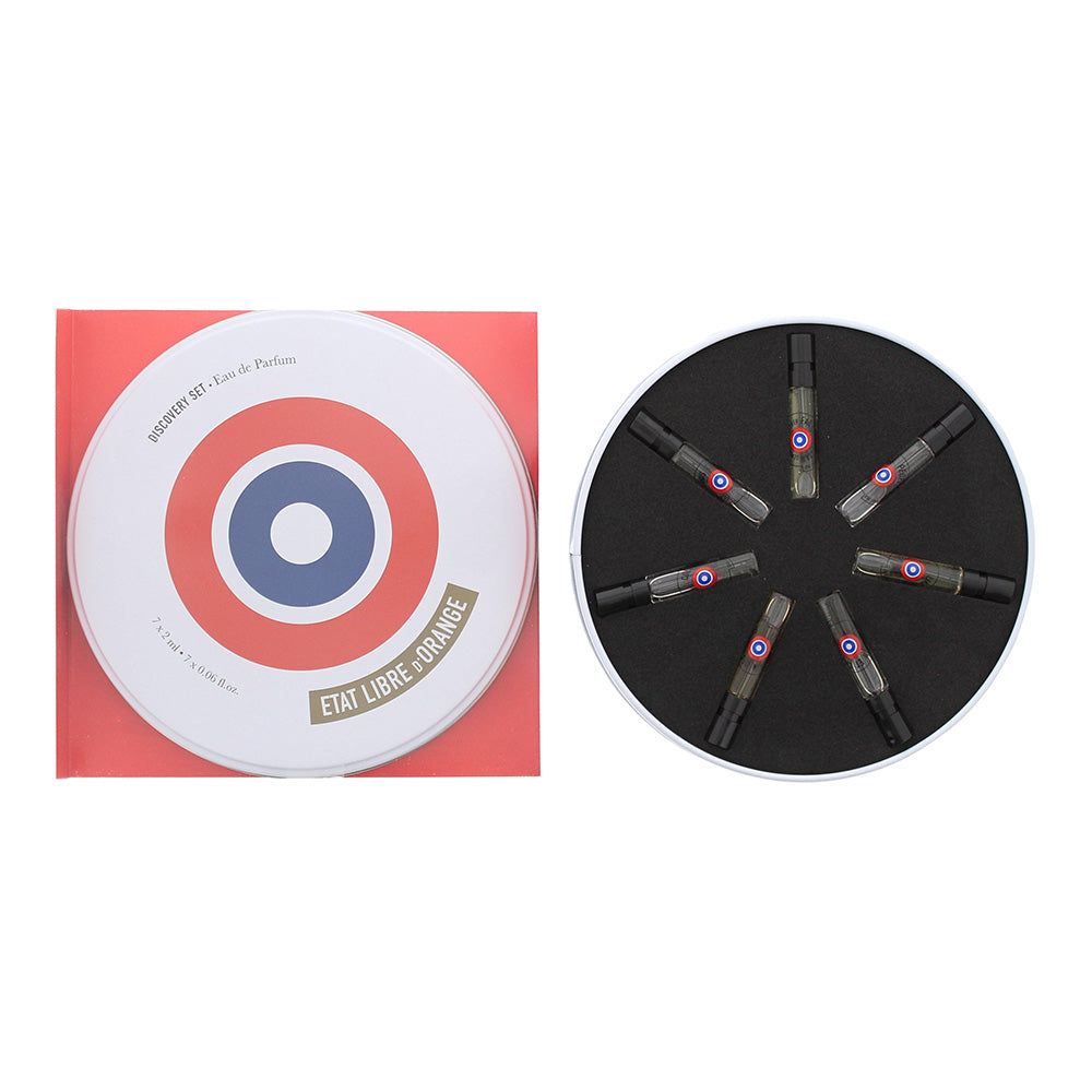 This Etat Libre d'Orange Discovery Set Seven Classics 7 Piece Gift Set contains 2ml minatures of 7 great unisex fragrances from Etat Libre d'Orange. The scents include the popular summer scent Cologne Etat Libre d'Orange, which has top notes of Bergamot, Blood Orange and Green Notes, sitting on a heart of Orange Blossom and Jasmine and base notes of Musk and Leather, and the gorgeous Dangerous Complicity, which contains notes of Rum, Coconut, Leather, Chinese Osmanthus, Cashmere Wood, Ylang-Ylang, Calamus, Sandalwood, Egyptian Jasmine, Ginger, Lorenox, Bay Leaf and Patchouli. Others included in the set are Like This, Putain Des Palaces and Jasmin Et Cigarette Eau De Parfum.