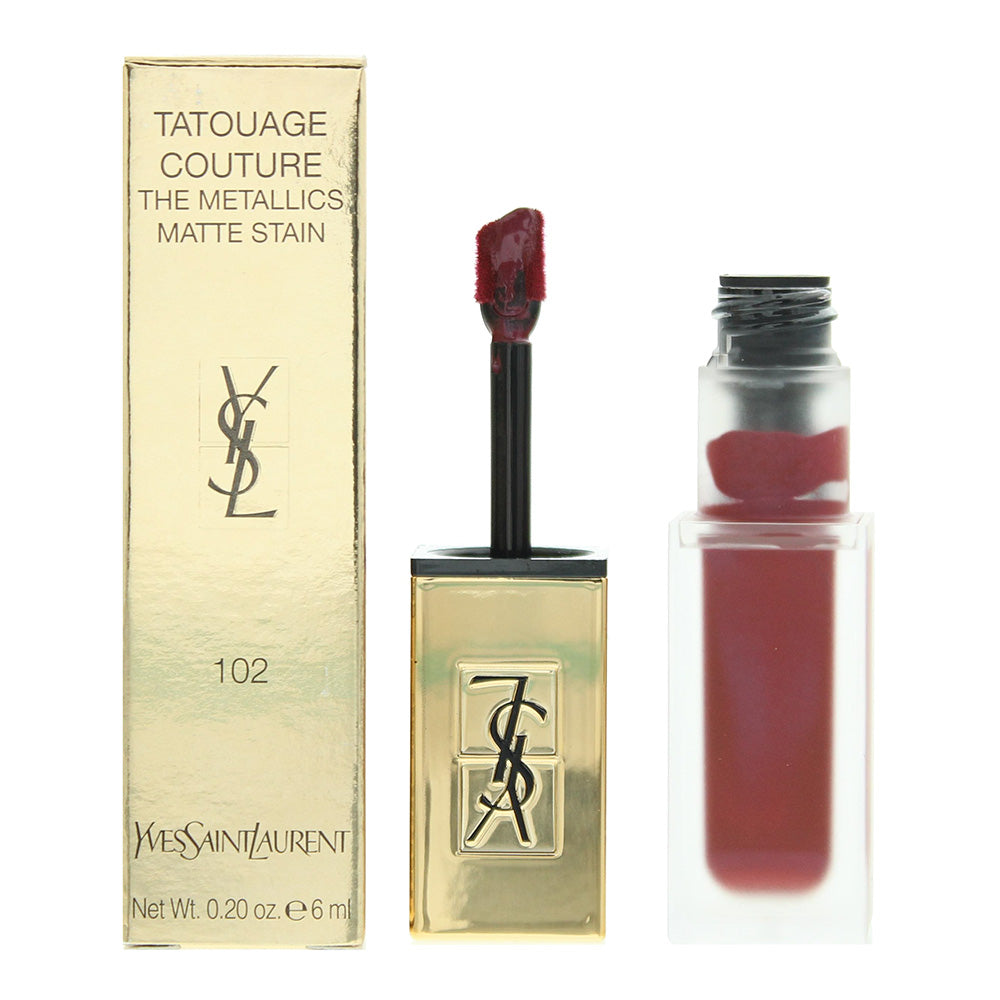YSL Tatouage Couture The Metallics Matte Lip Stain is a ultra- high pigment and long-lasting colour for an metallic matte look. The non-drying formula creates a lightweight feel. Guaranteed to last all day and comes in a variety of shades.