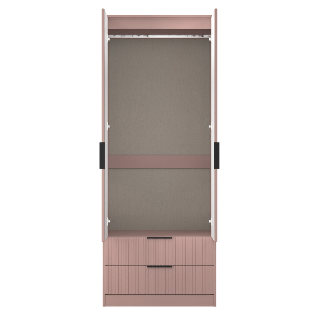 Fluted 2 Drawer Double Wardrobe in Kobe Pink - Ready Assembled