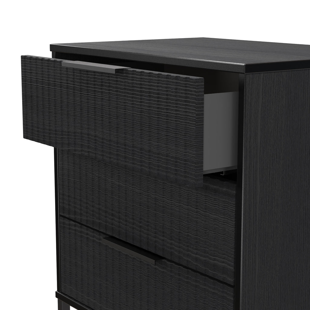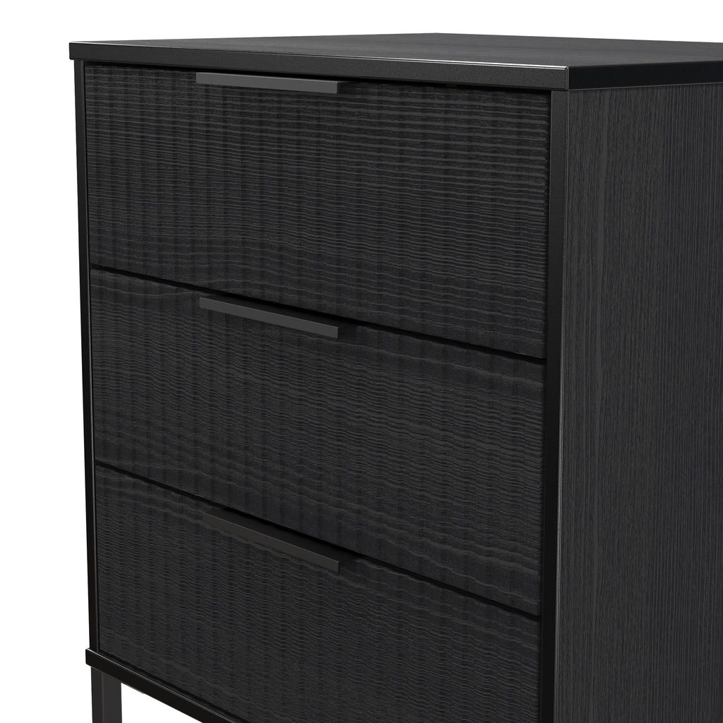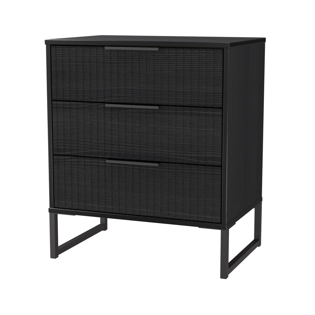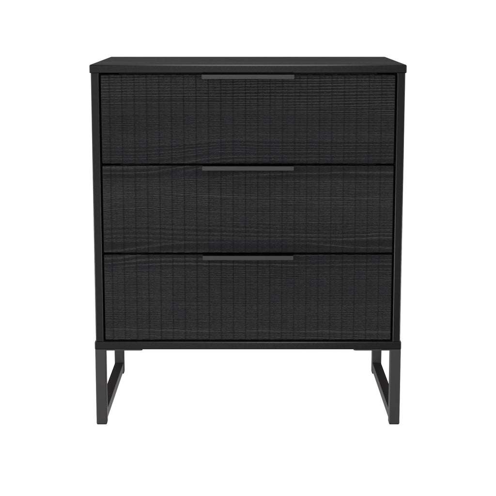 Fluted 3 Drawer Chest in Black Ash - Ready Assembled