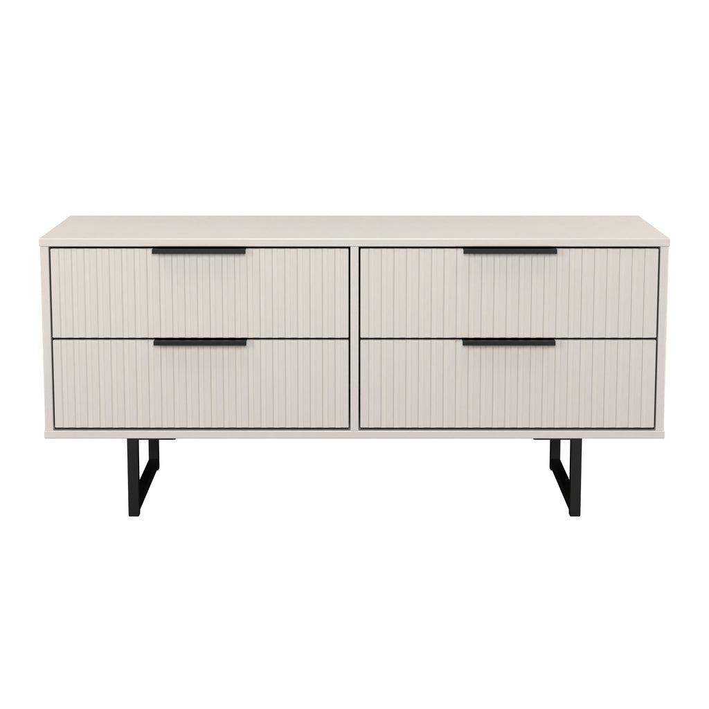 (Dimensions: H60 x W115 x D40cm) A large 4 drawer bed box. A Perfect storage solution for any room (not just the end of your bed). Could also be used as a low level TV/Media stand. A new stand out range, named for the new deep cut "fluted" grove patten of the drawer and door fronts. Featuring black metal handles and black sleigh legs. A striking and individual range that is perfect for the modern home. All our furniture is made in the United Kingdom, to the highest quality using responsibly sourced materials. It is delivered direct to your location of choice by one of our two man delivery teams, and comes fully assembled (although items with legs will have those legs removed during transit to avoid damage).