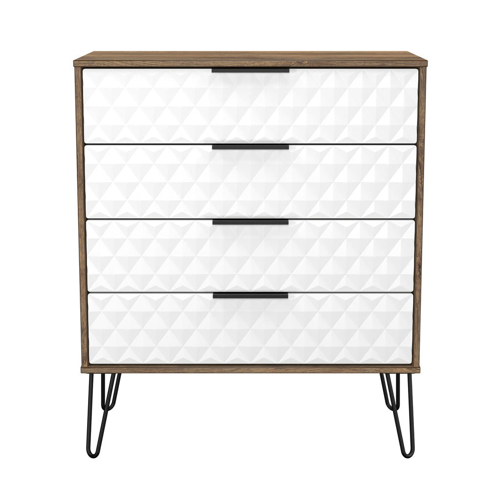 Harlequin 4 Drawer Chest in White Matt & Vintage Oak - Ready Assembled