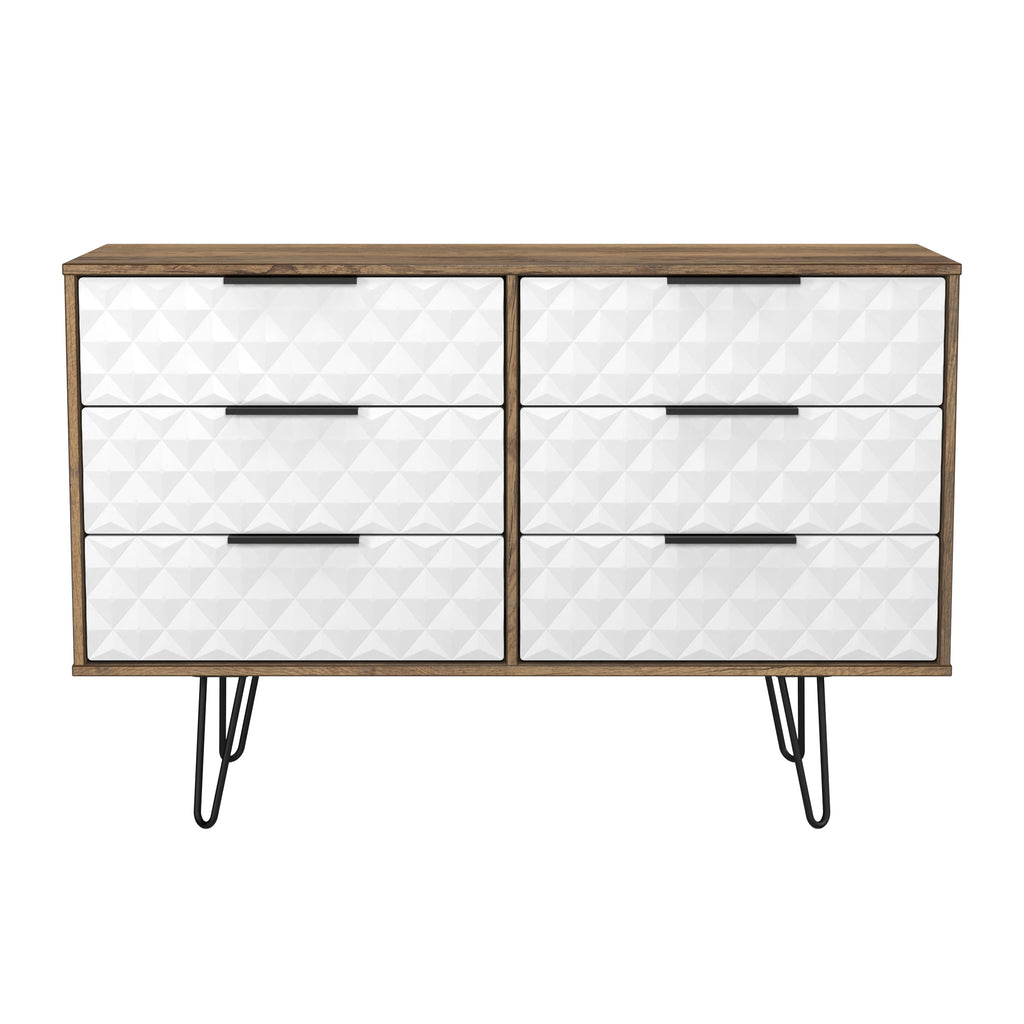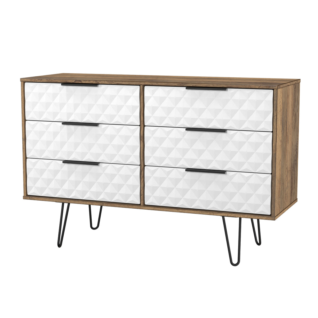 Harlequin 6 Drawer Midi Chest in White Matt & Vintage Oak - Ready Assembled