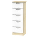 Cairo Ready Assembled Tallboy Chest of Drawers with 5 Drawers - White Gloss & Bardolino Oak