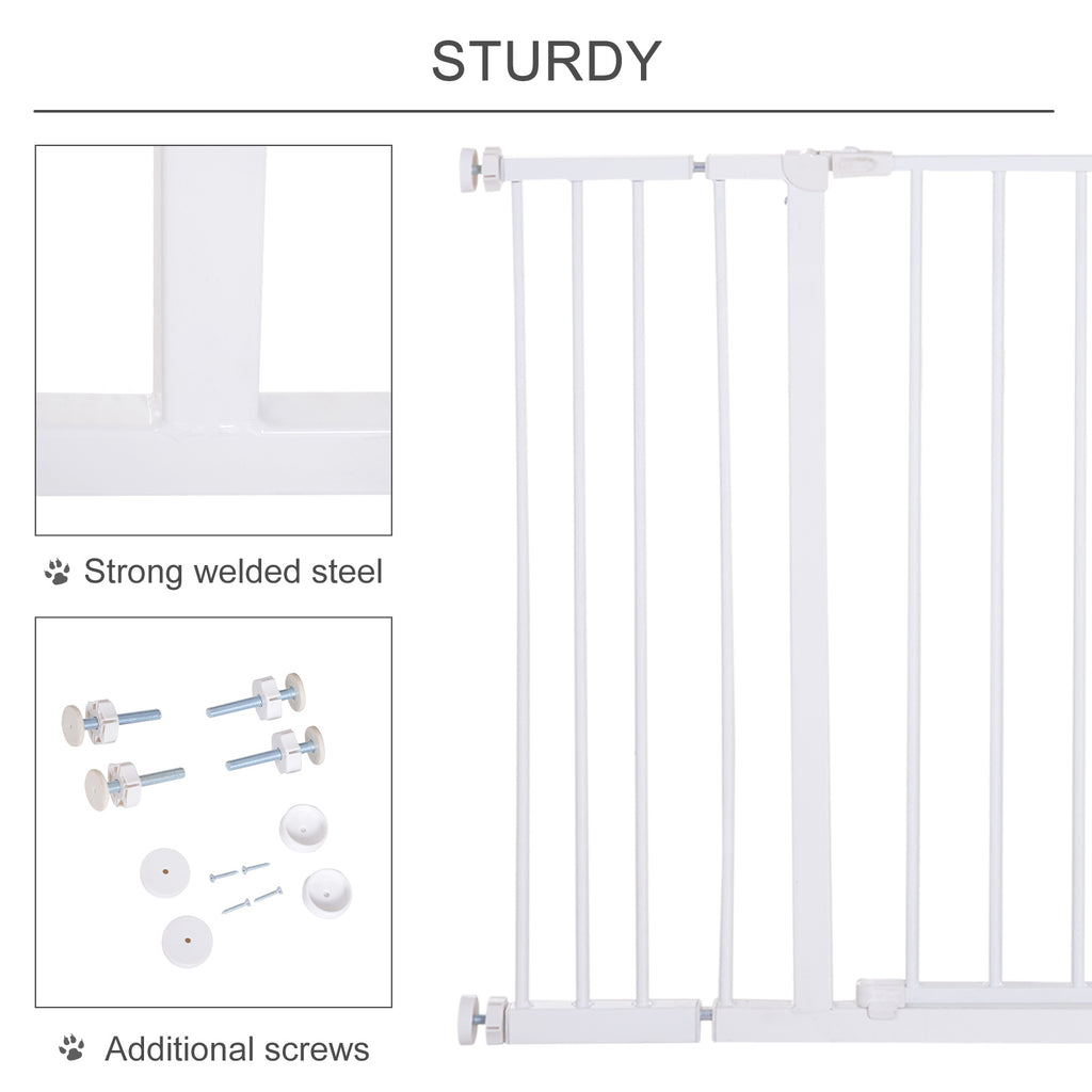 PawHut Pressure Fitted Pet Dog Safety Gate Metal Fence 76 cm Tall, White