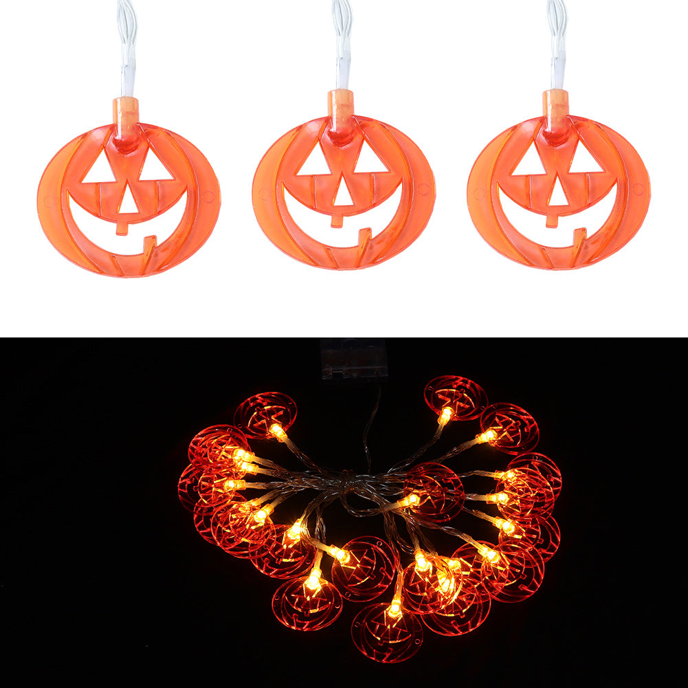 Bring festive charm to your Halloween with these smiley pumpkin LED string lights that brighten any space instantly. Featuring two light modes steady glow or flashing effect these lights add playful yet spooky vibes to your decorations. Battery operation allows flexible placement anywhere without needing a nearby outlet. Bright pumpkin-shaped LED bulbs create a cheerful and haunting atmosphere perfect for indoor or outdoor use. Compact lightweight and flexible these string lights are easy to hang store and reuse year after year.
