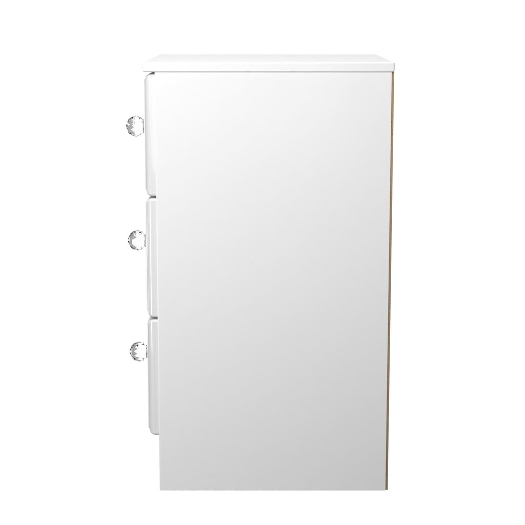 Lisbon Ready Assembled Bedside Table with 3 Drawers - White Gloss & White