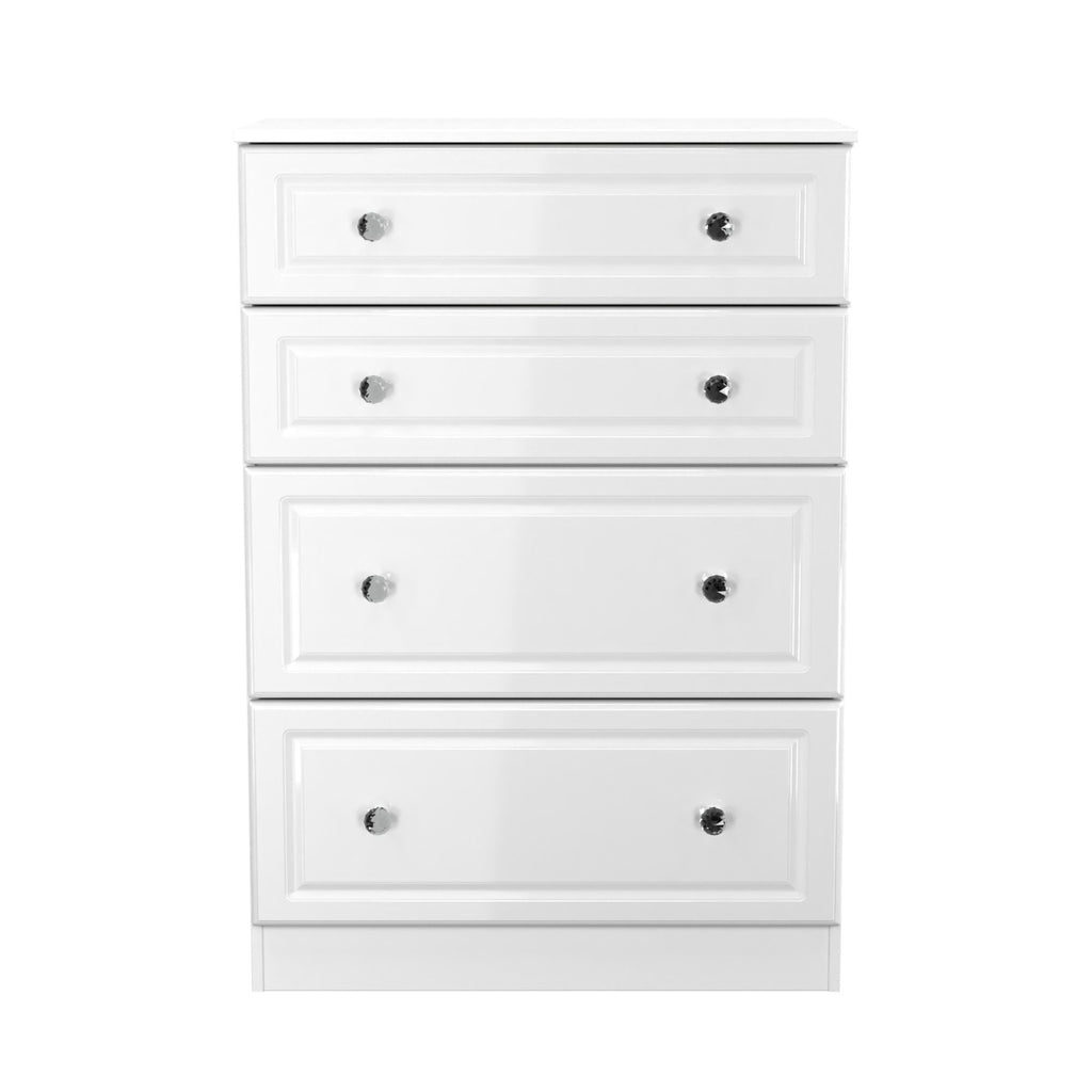 Lisbon Ready Assembled Chest Of Drawers with 4 Drawers - White Gloss & White