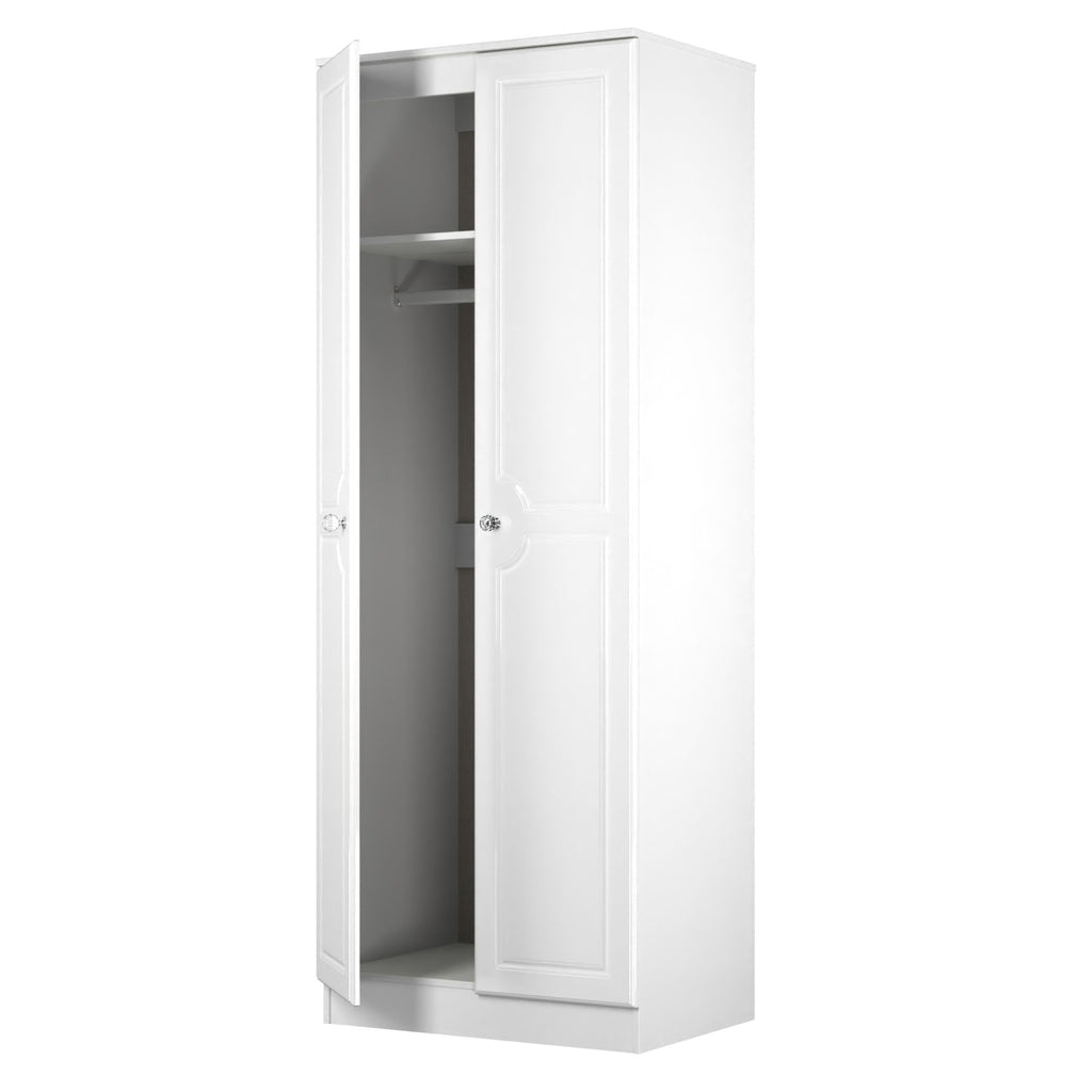 Lisbon Ready Assembled Wardrobe With 2 Doors - White Gloss & White