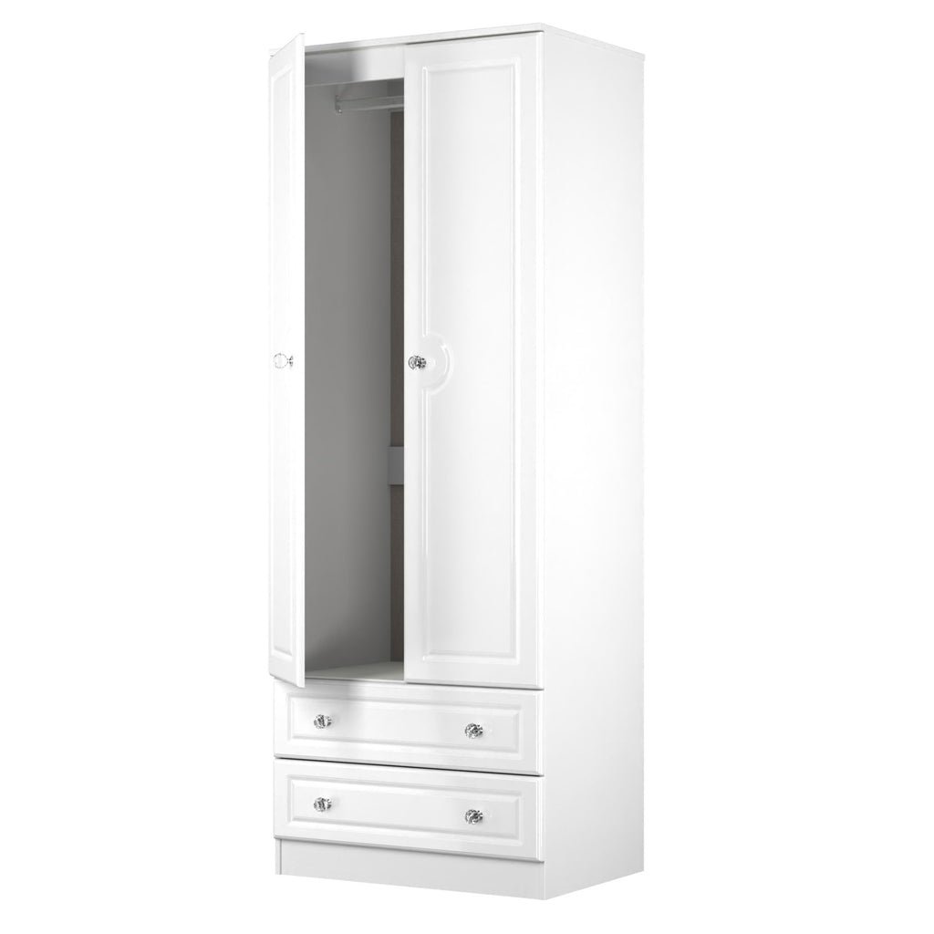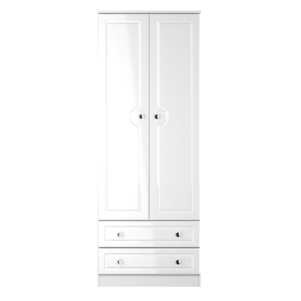 Lisbon Ready Assembled Wardrobe with 2 Doors and 2 Drawers - White Gloss & White