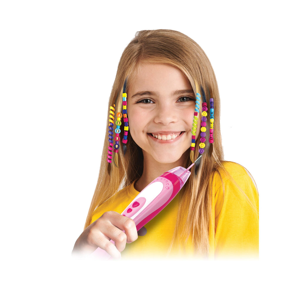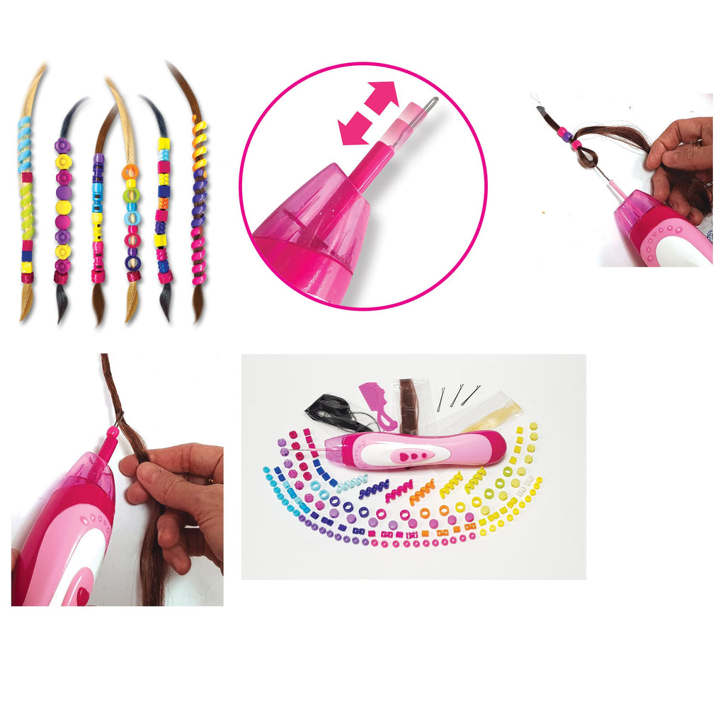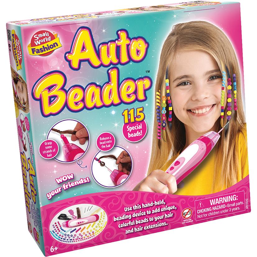 Instantly add colourful beads to your hair with the Small World Fashion Auto Beader. This clever, battery-operated device makes styling quick and fun. Simply load the special beads into the tool, hook a strand of hair, and press the button to automatically thread the beads for a cool, unique look. The set includes 115 assorted beads to create endless new styles. Perfect for parties and festivals, the Fashion Auto Beader lets you change your look in minutes.