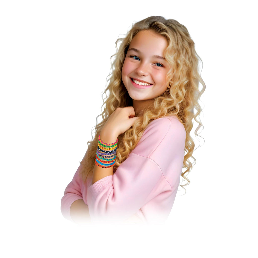 Weave colourful friendship bracelets for your entire crew with the Small World Braided Bangles Kit. This fun and easy-to-use set makes braiding intricate patterns simple. Just use the special double-sided weaving wheels and colourful threads to create up to 10 stylish bracelets, perfect for wearing and sharing. It is a classic activity that never goes out of style and a wonderful way to create personalised gifts for friends. The Braided Bangles Kit provides hours of quiet, creative fun.