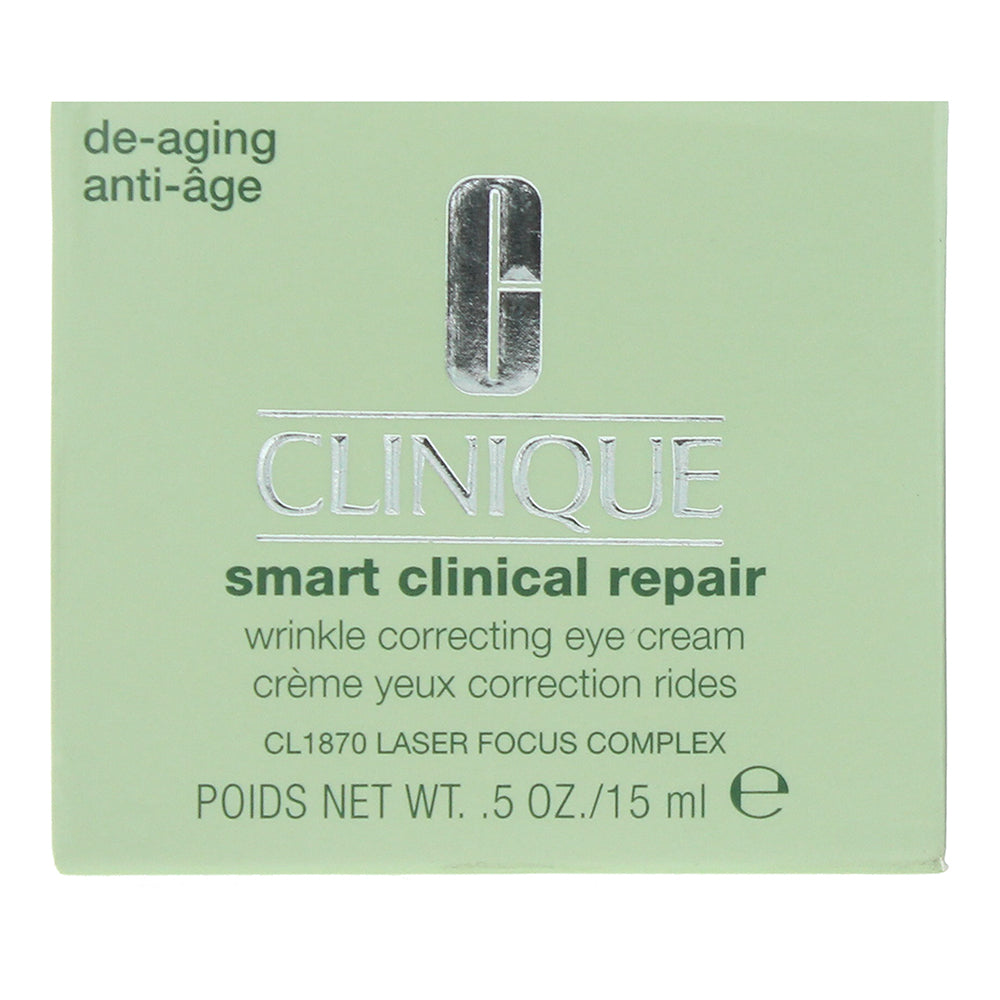 Clinique Smart Clinical Repair Wrinkle Correcting Eye Cream is an advanced treatment specially formulated to target the visible signs of aging around the delicate eye area. This lightweight yet deeply nourishing cream works to reduce the appearance of fine lines, wrinkles, crowâ??s feet, and puffiness while improving skin firmness and elasticity.