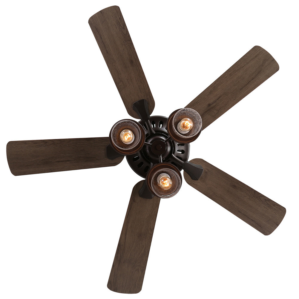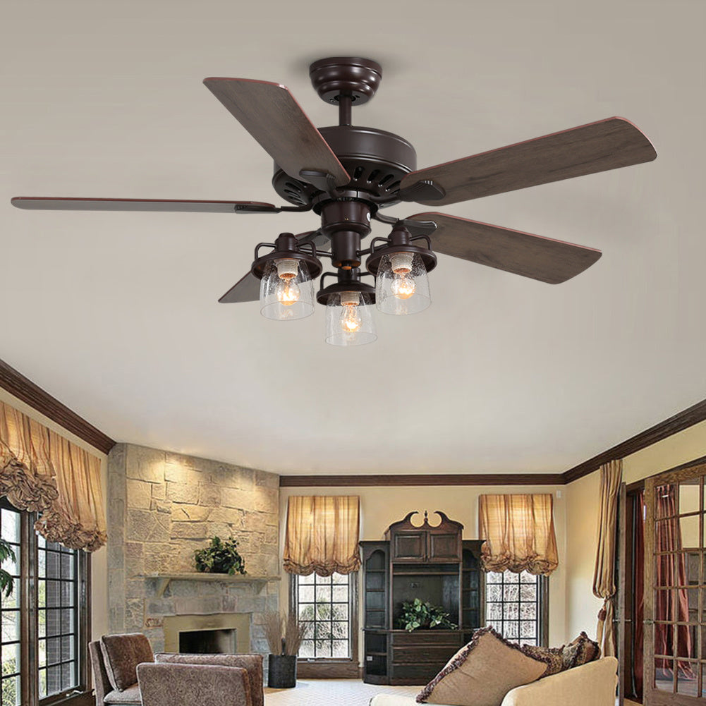 Elevate your home décor with our vintage ceiling fan. Featuring three glass lampshades finished in bronze, it exudes classic retro charm that will brighten any room. Its quiet motor offers three speed settings to keep your space comfortably cool during summer. The antique bronze finish and crystal finial add the perfect touch of elegance, making this fan a stylish and sophisticated addition to your home.