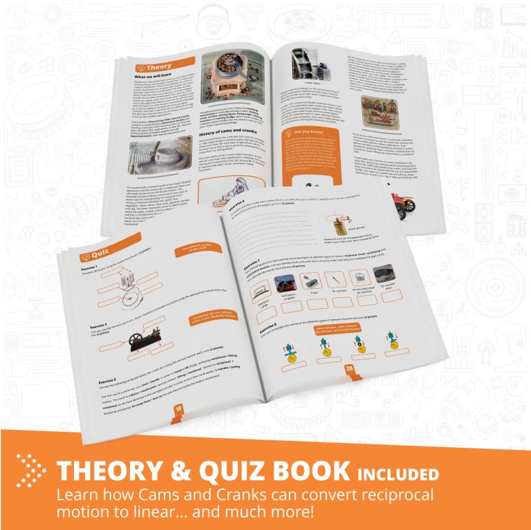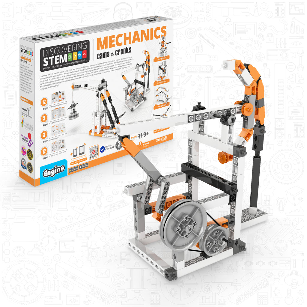 Discover how rotary motion can be transformed into other types of movement with the Engino Discovering STEM: Mechanics â?? Cams & Cranks kit! This fascinating set challenges young engineers aged nine and up to build and understand mechanisms using cams and cranks. Children can construct various engaging models, such as a model sewing machine, a flapping flying eagle, or an oil pumpjack, using the versatile Engino building system to see these principles in action.