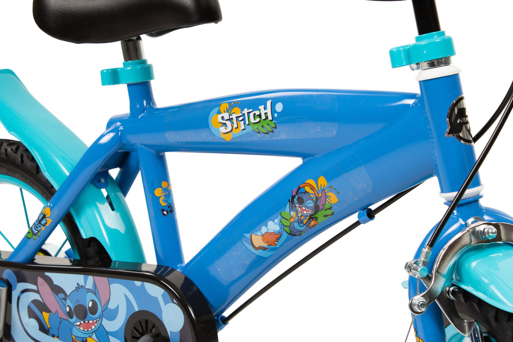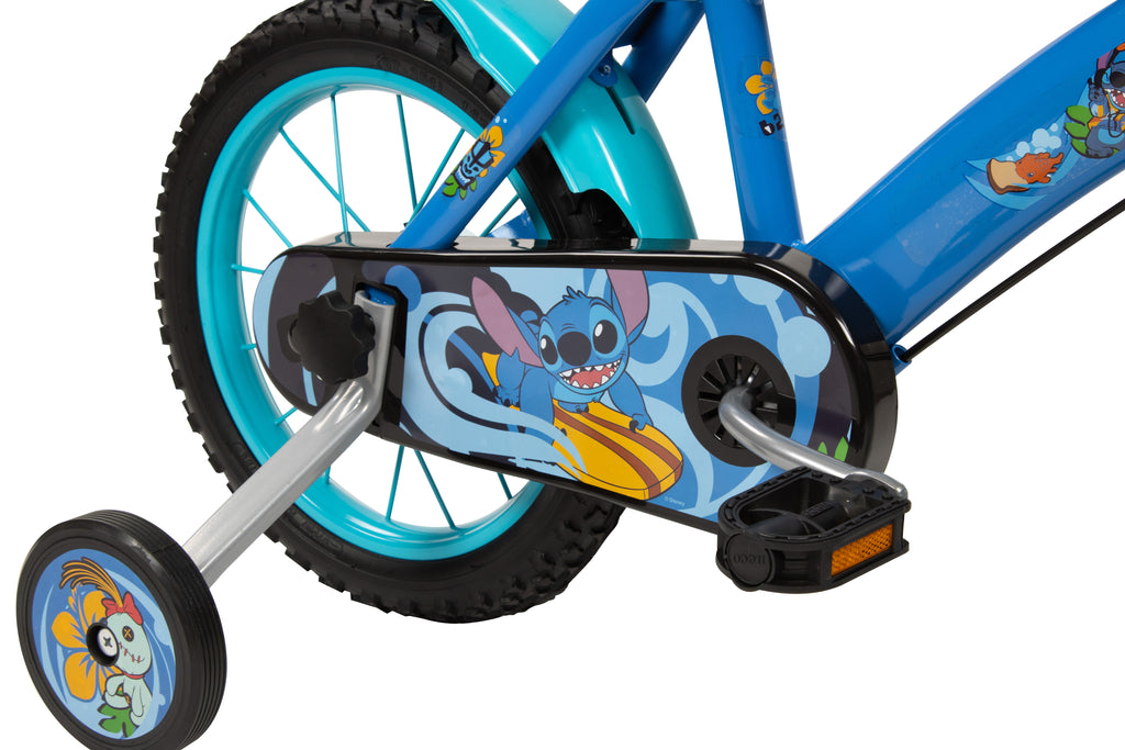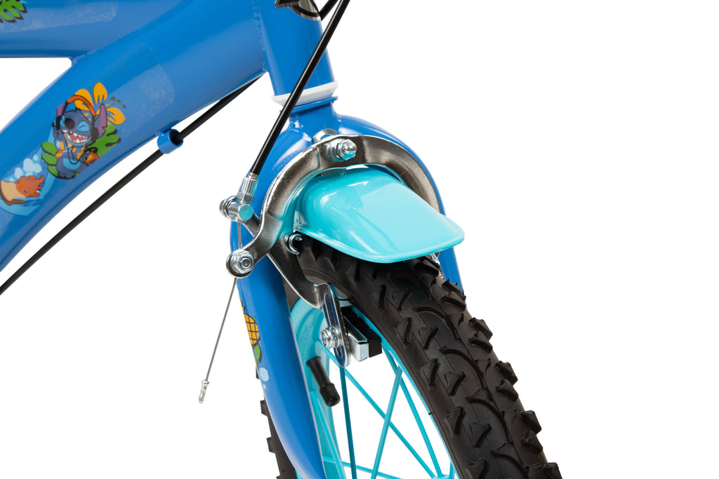 Get ready for out-of-this-world adventures with the Disney Stitch 14 inch Bicycle! Perfect for young fans of Disney's lovable alien, this bike is designed to make learning to ride a fun and exciting experience. Featuring vibrant blue and turquoise colours with cool Stitch graphics all over, including a fantastic Stitch front shield, this bike is sure to be a hit. The Disney Stitch 14 inch Bicycle comes equipped with removable stabilisers to help build confidence, and as skills develop, they can be easily detached. Safety is key with front calliper brakes, and comfort is ensured with an adjustable padded seat and handlebars. This bike is ideal for children ready to pedal alongside their favourite intergalactic friend.