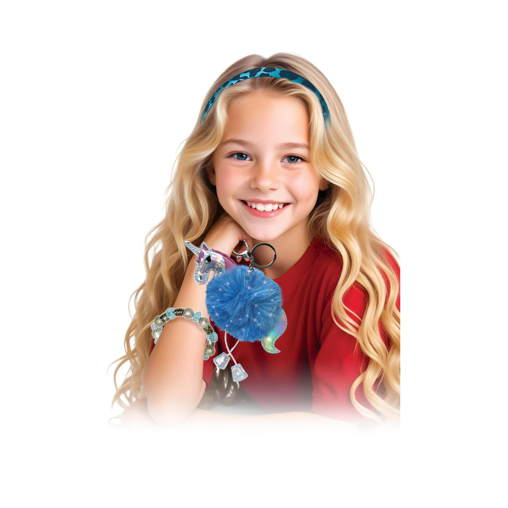 Create three magical accessories with the Small World Fluff and Fashion Unicorn kit. This fun set lets young designers make a beautiful beaded bracelet, decorate a stylish headband, and create a fluffy pompom keychain complete with a sparkling unicorn charm. With a variety of beads and materials included, itâ??s a brilliant way to express your creative style. The Fluff and Fashion Unicorn kit is a fantastic 3-in-1 project for any fan of these enchanting creatures.