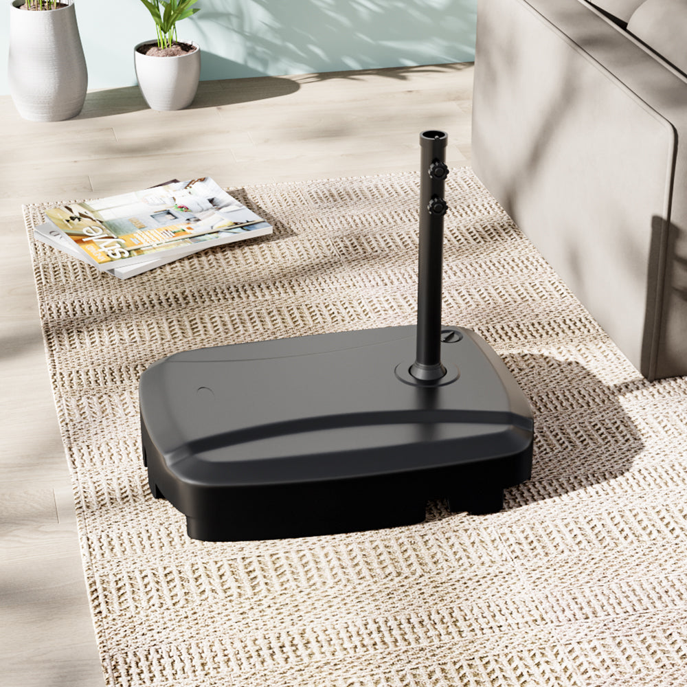 This Garden Sanctuary mobile parasol base is designed for both practicality and performance, featuring two integrated wheels for effortless movement. Simply fill the base with sand or water to increase its weight and enhance stability, adjusting the amount as needed to suit your conditions. Once your parasol is secured in place, the base provides reliable support, allowing you to relax in the shade without worry. Combining functionality with quality, this base is an excellent choice for gardens, patios or outdoor seating areas.