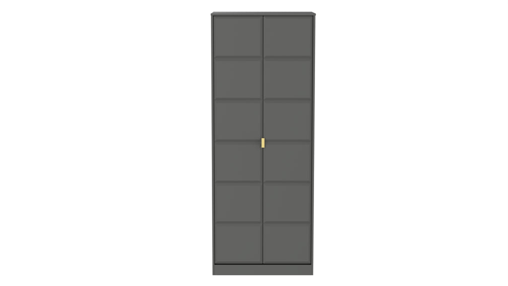 (Dimensions: H197 x W77 x D53cm) This tall double door wardrobe is perfect for any bedroom. . A modern and distinctive range. Named for the unique "Cube" patten of the drawer and door fronts. Also features Gold Metal Handles and Gold Hairpin Legs. Comes in a wide range of colours including eye cathching two tone colour combinations. All our furniture is made in the United Kingdom, to the highest quality. It is delivered direct to your location of choice by one of our two man delivery teams, and comes fully assembled (although legs may be removed to prevent damage in transit).