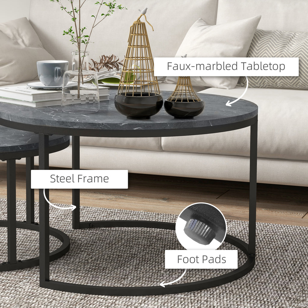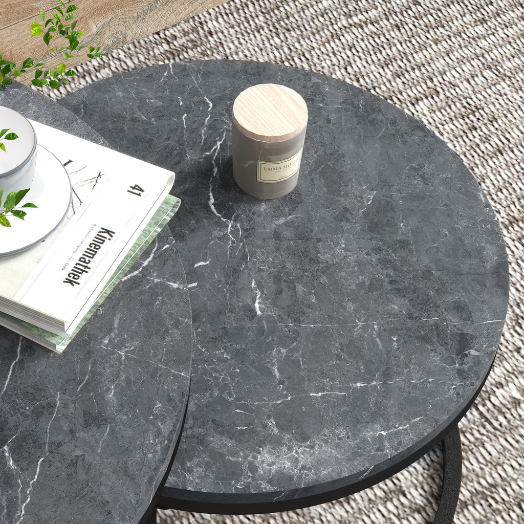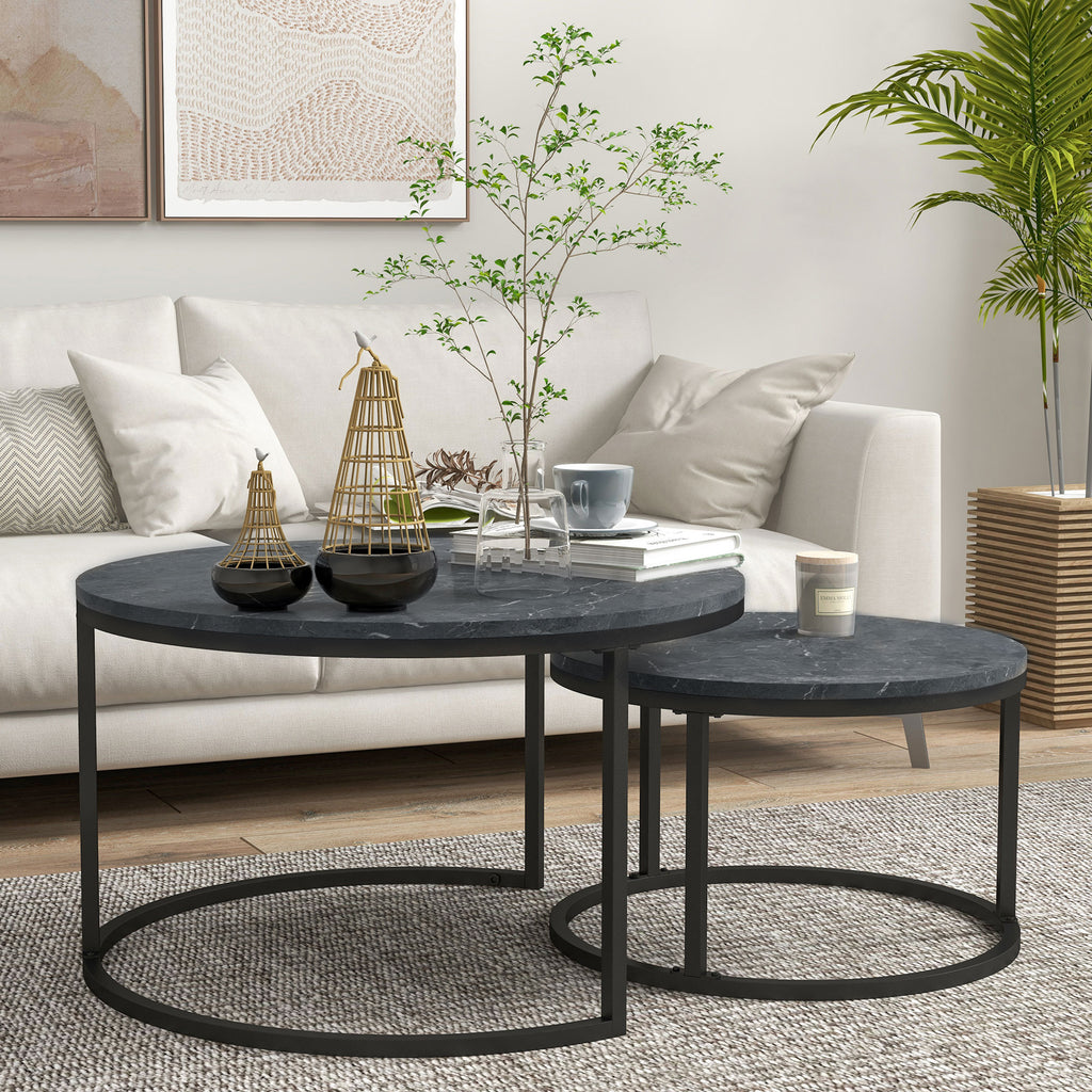 Whether your pull them apart, or push them together, these two tables from HOMCOM are sure to make the right impression in your home. The set is formed of a larger table and a smaller, so they overlap each other perfectly, making it also good for compact storage if ever needed. Each table base is made from steel to ensure a stable structure. The table tops are covered in a beautiful marble-effect which will hold the style and beauty for years to come.