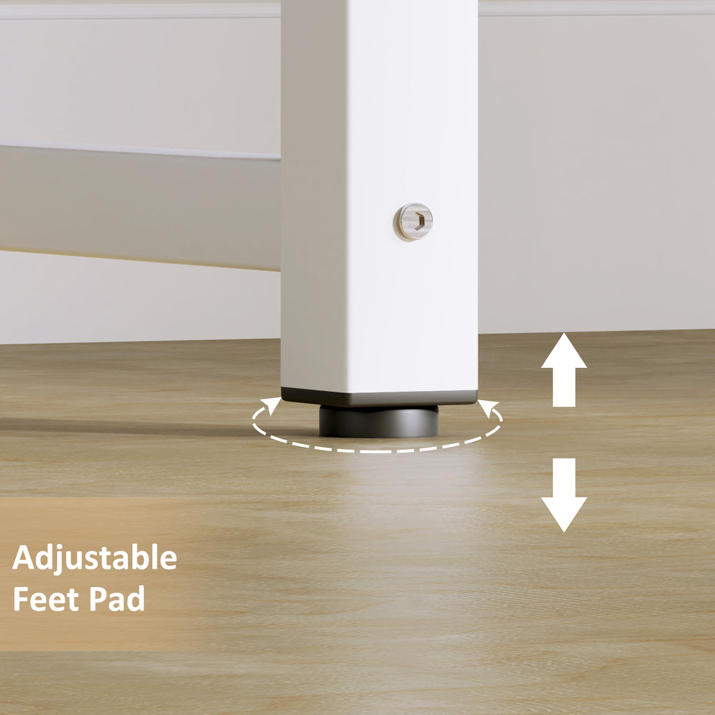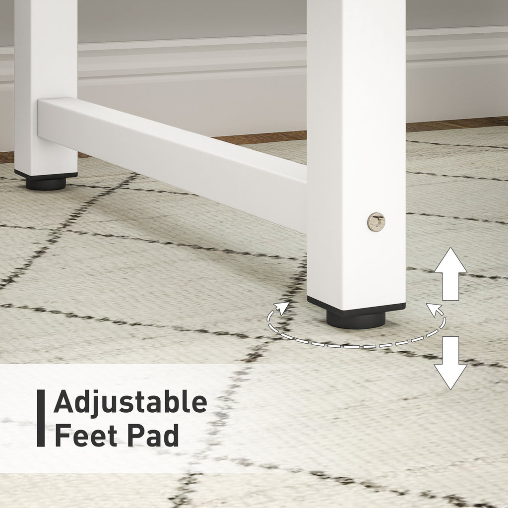 Sometimes, simplicity is key. This HOMCOM computer table proves it. Built with a robust steel frame that supports up to 100kg, it features a sleek, minimalist design with a melamine-coated tabletop that's easy to wipe clean?great for busy, on-the-go lifestyles. Adjustable feet ensure stability and balance at all times, making it an optimal addition to both home and office spaces.